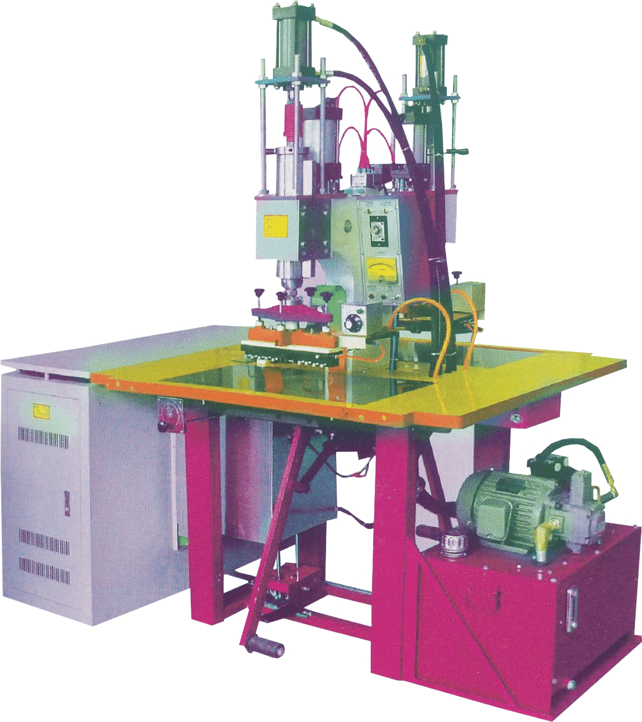It use high frequency electric field to make the plastic internal molecules vibrate to produce heat and make all kinds of plastic welding. Main use: shoes, leather bags, toys, stationery, etc.